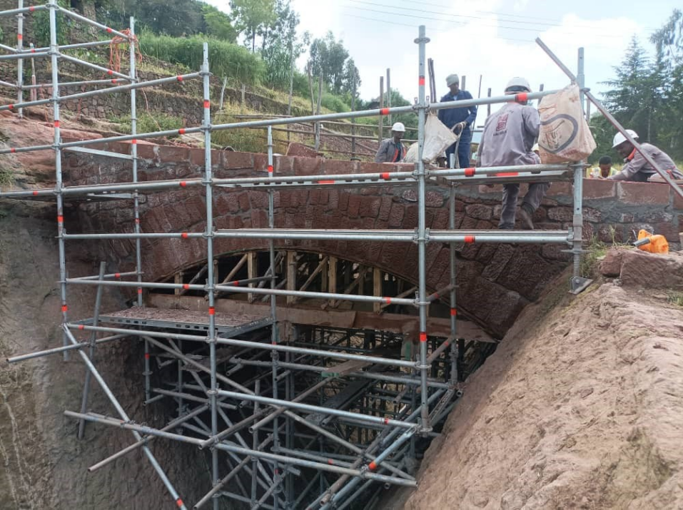 Lorsque ce projet a débuté en 2020, le CNRS a mis à disposition pour les travaux de conservation d’urgence et de valorisation du site de Lalibela, à la fois un tailleur de pierre – Antoine Garric – et un spécialiste de la gestion du patrimoine – Kidane Ayalew, fin connaisseur du site. À partir des critères préparés par Kidane Ayalew, 19 artisans (tailleurs de pierre, maçons et charpentiers) ont été sélectionnés par le comité local pour la conservation du patrimoine de Lalibela. Antoine Garric s’est chargé de les former, entre autres, à la réalisation d’ouvrages d’art en pierres de taille et ils ont entrepris ensemble la construction de plusieurs ponts. Kidane Ayalew pour sa part a organisé les travaux et leur logistique sur le site, géré les équipes et assuré la coordination au quotidien avec les autorités civiles et religieuses, à Lalibela et à Addis-Abeba.